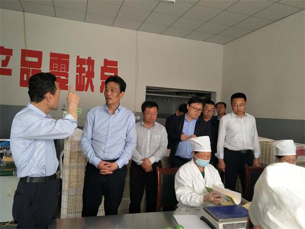 戴征社一行來到東方紅食品開發(fā)有限公司,走進生產車間、產品展室,認真聽取公司總經(jīng)理高維軍介紹生產經(jīng)營、農企利益聯(lián)結和帶貧益貧等情況。
